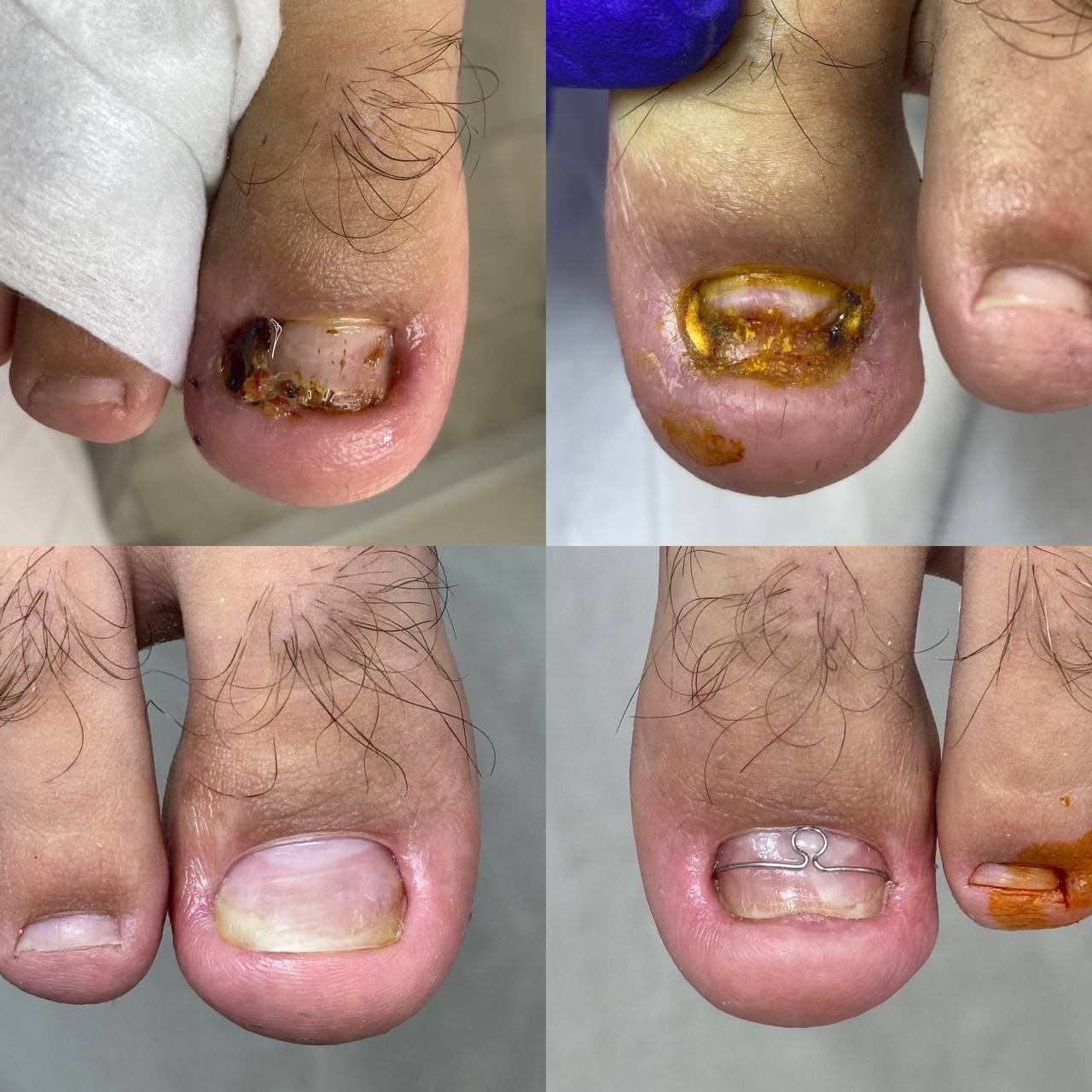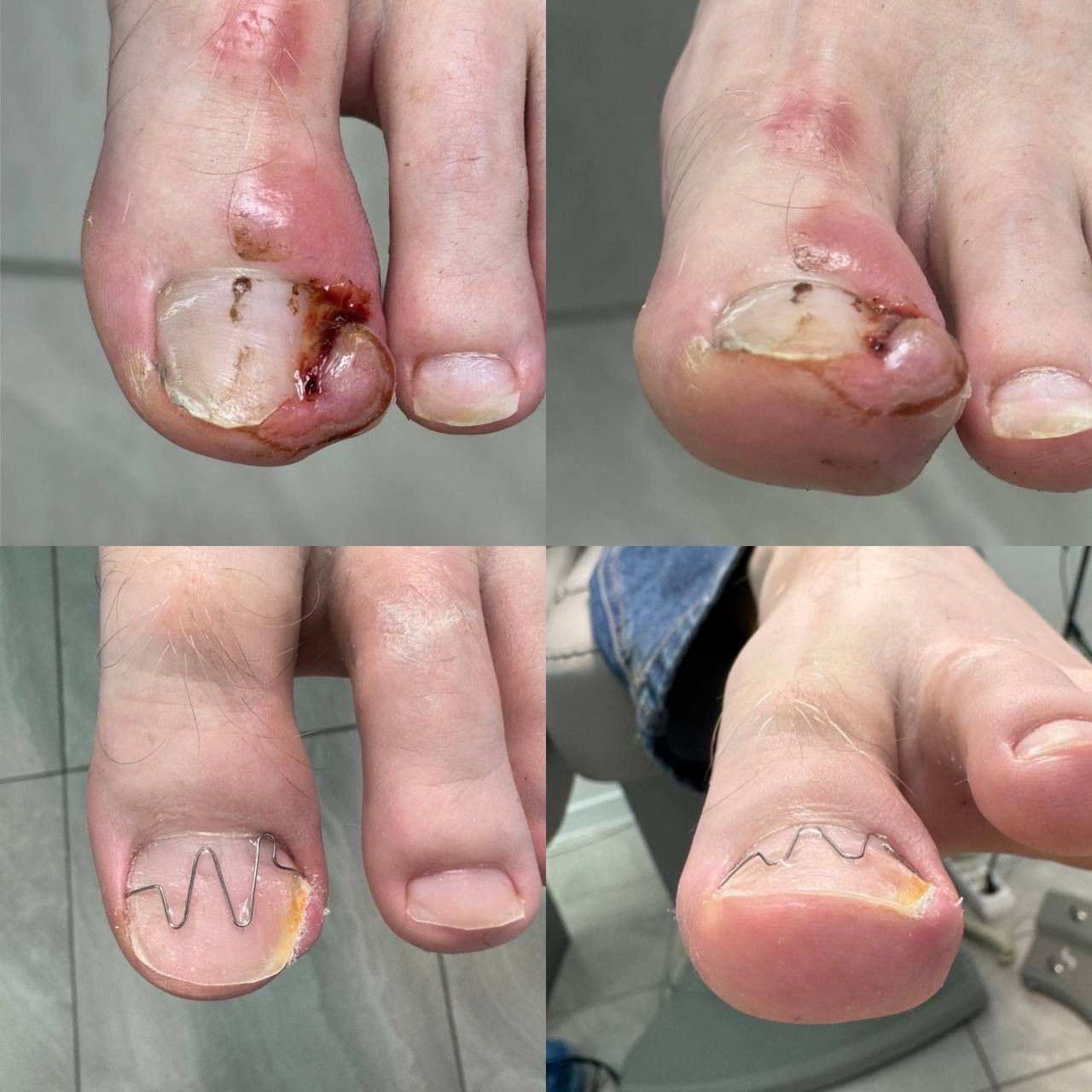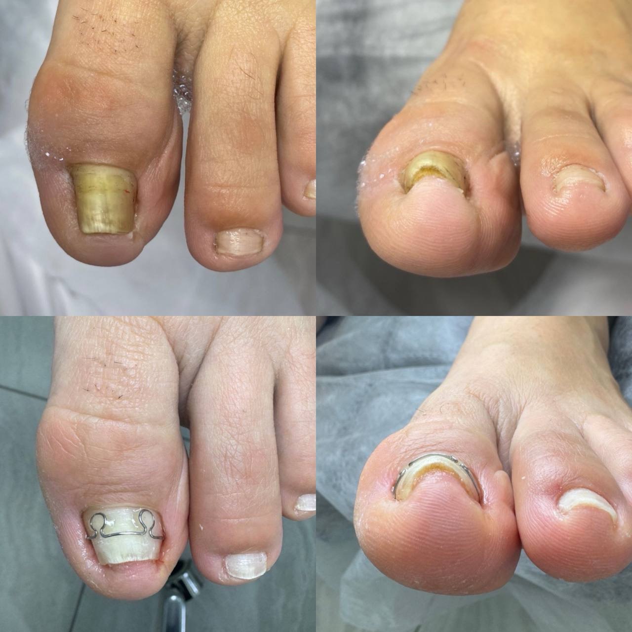 Изготавливается скоба из медицинской нержавеющей проволоки, индивидуально под каждый ноготок.).