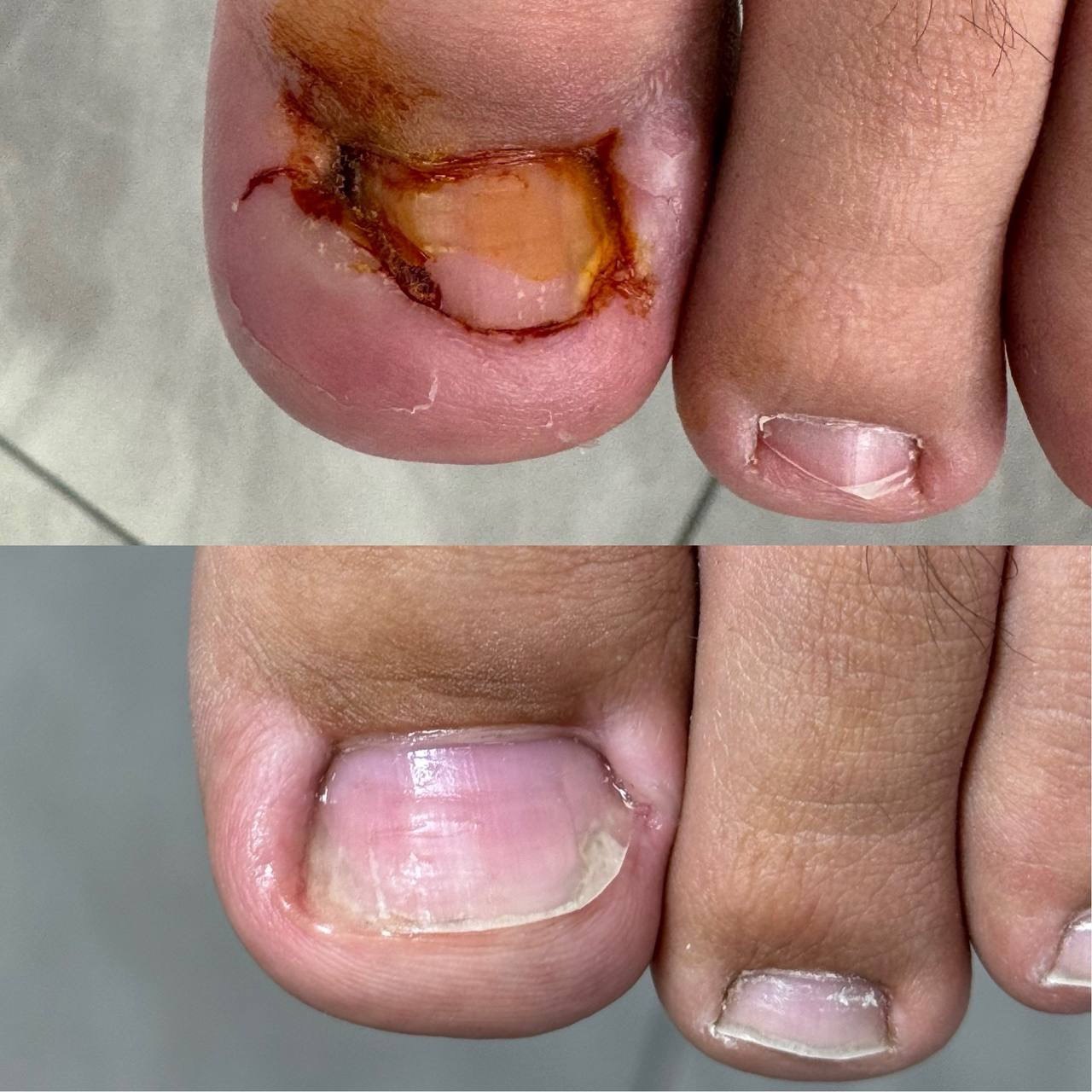На приеме производится осмотр, выявлении причины врастания ногтя, рекомендации направленные на исключение в дальнейшем рецидива. После производится обработка с извлечением сегмента вросшего ногтя (отстригание угла ногтя), стерильная перевязка с антисептическим и заживляющим средством.